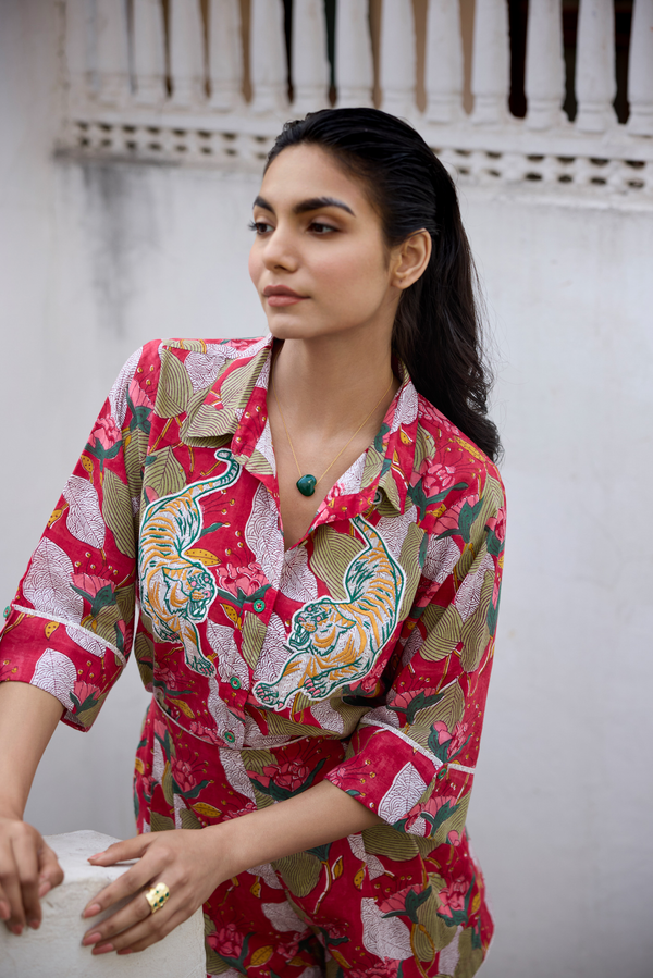 - Embroidered hand-blocked cotton shirt, length: 24-25 inches
