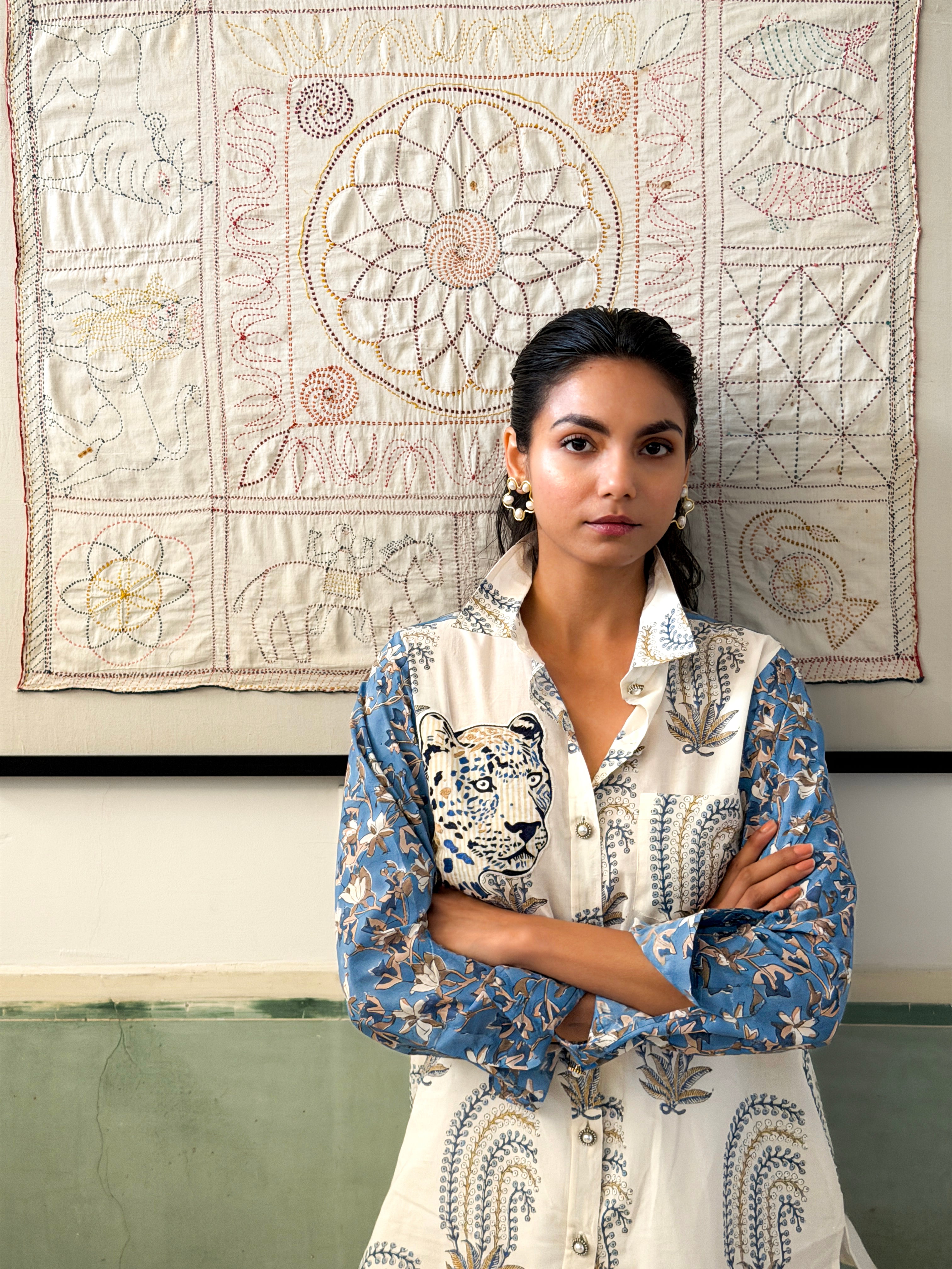 With mastery in developing embroidery patterns and other complex techniques, Sher Bache’s in-house team of specialists convert animal portraits, hand drawn by its founder, to comprehensive embroideries.