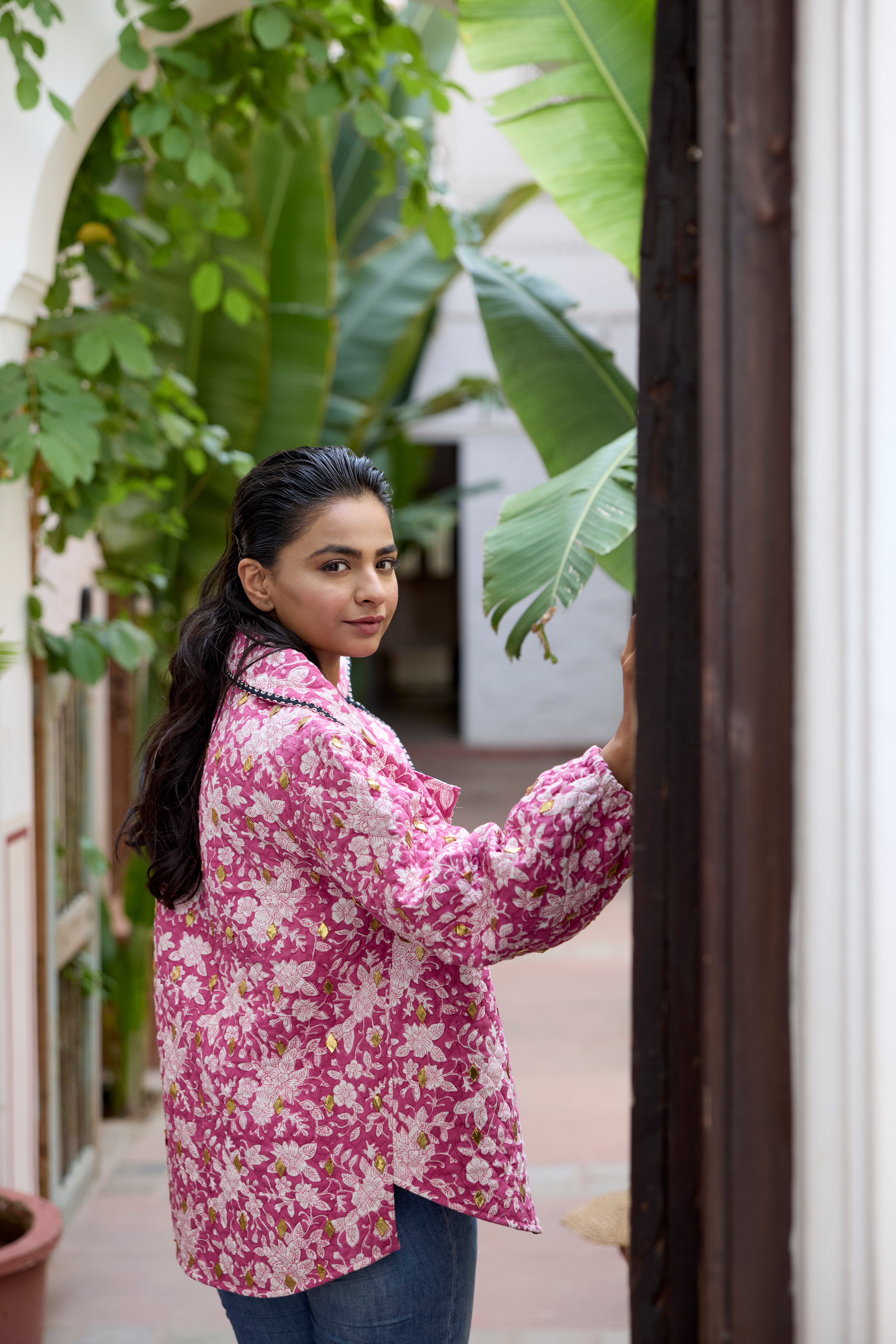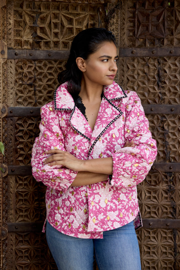 - FREE SIZE QUILTED JACKET with smocked cuffs