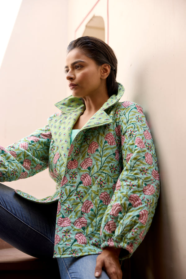 • FREE SIZE QUILTED JACKET with smocked cuffs