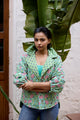 The fabric, made of natural yarns is hand blocked by artisans from Jaipur, commissioning the printing technique that involves meticulous carving of intricate designs onto wooden blocks by hand, which are then dipped into natural dyes and hand printed onto the fabric with extreme precision.
