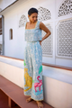 The fabric, made of natural yarns is hand blocked by artisans from Jaipur, commissioning the printing technique that involves meticulous carving of intricate designs onto wooden blocks by hand, which are then dipped into natural dyes and hand printed onto the fabric with extreme precision.