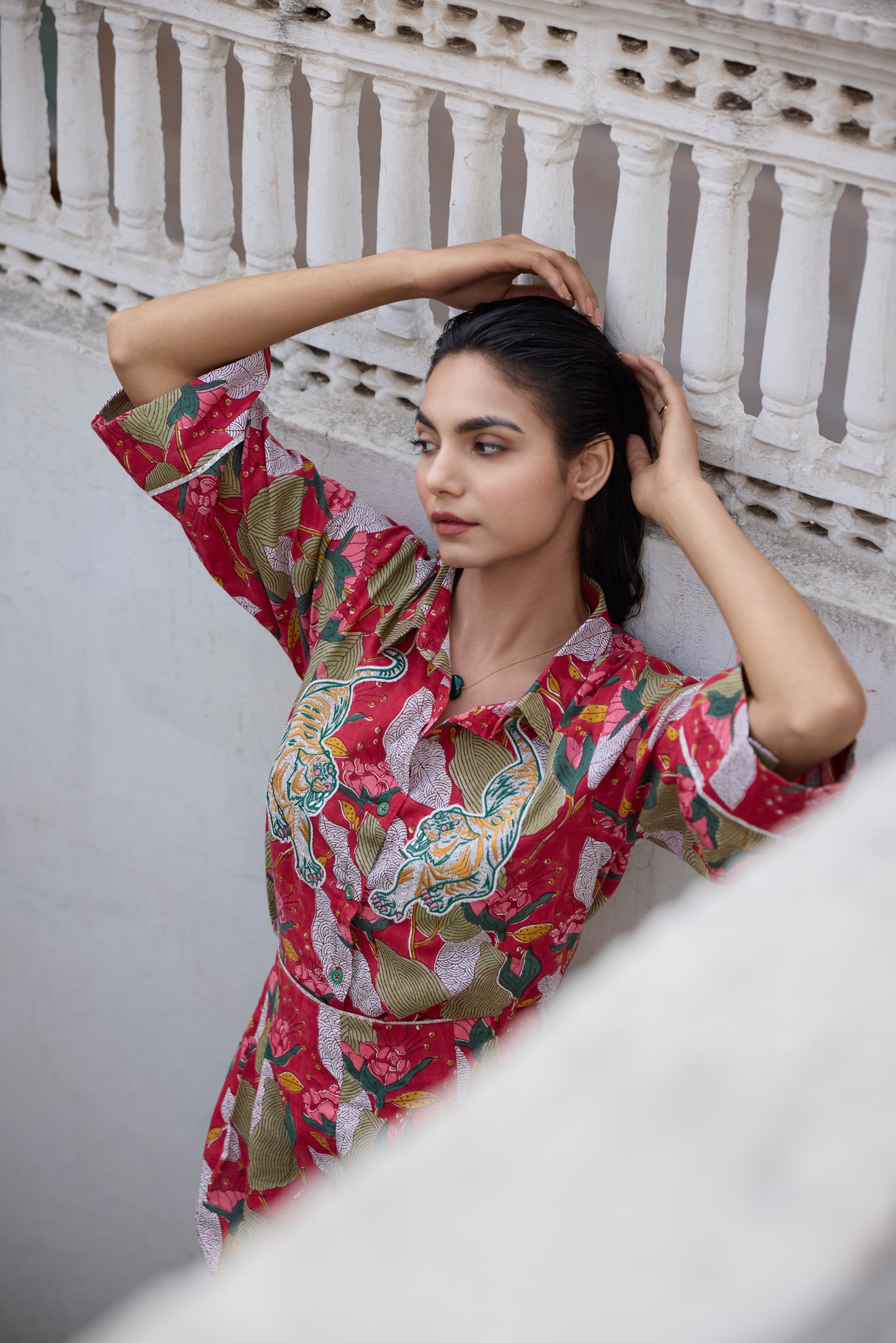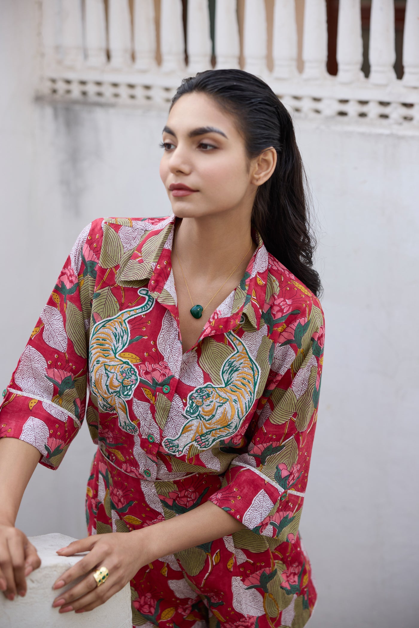 - Embroidered hand-blocked cotton shirt, length: 24-25 inches