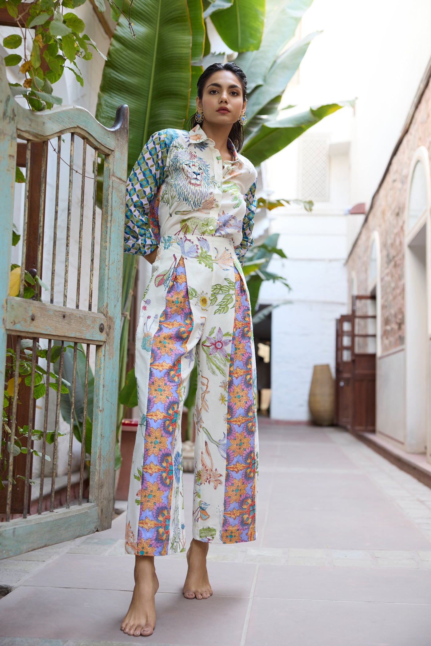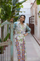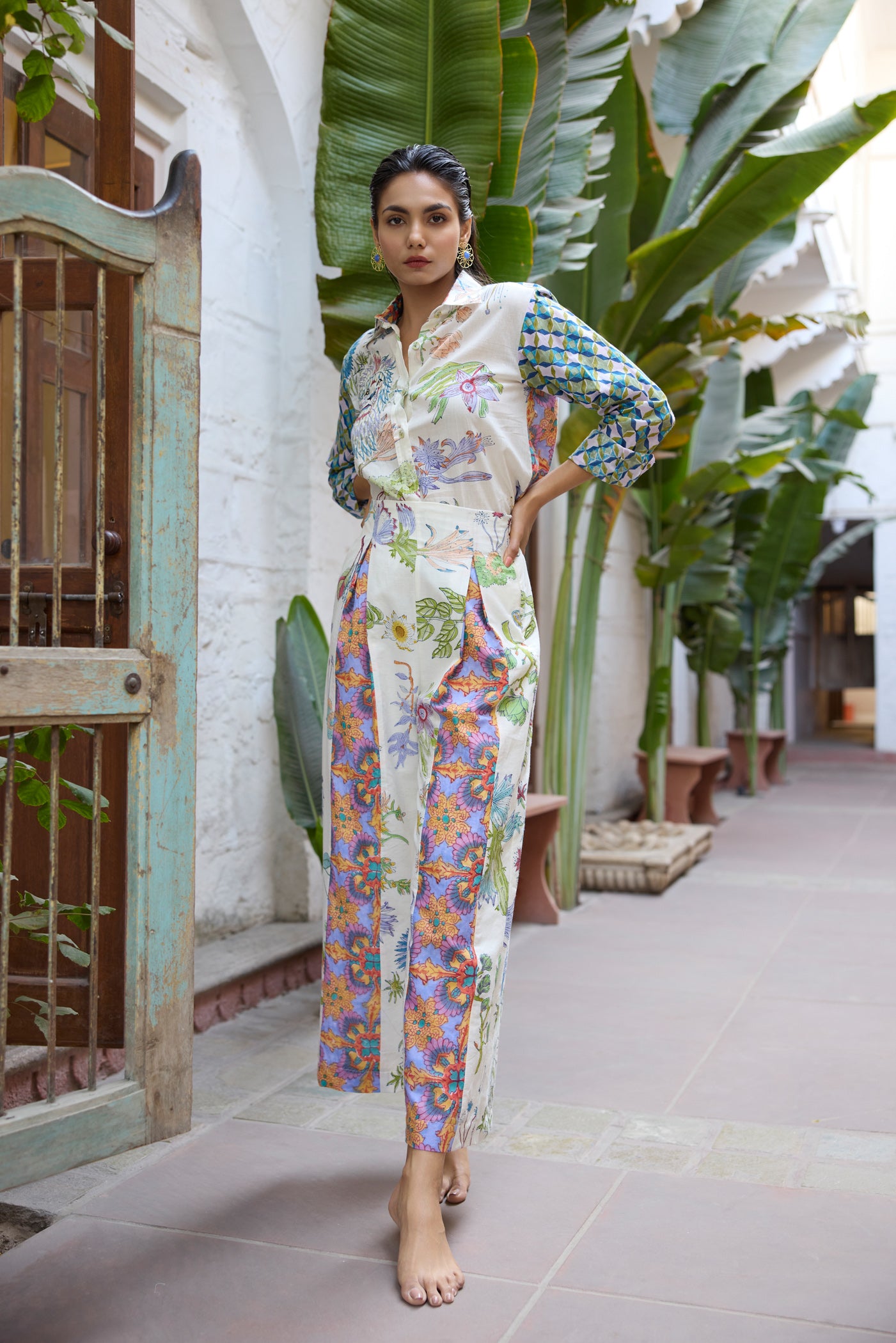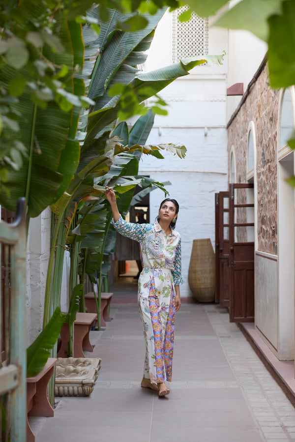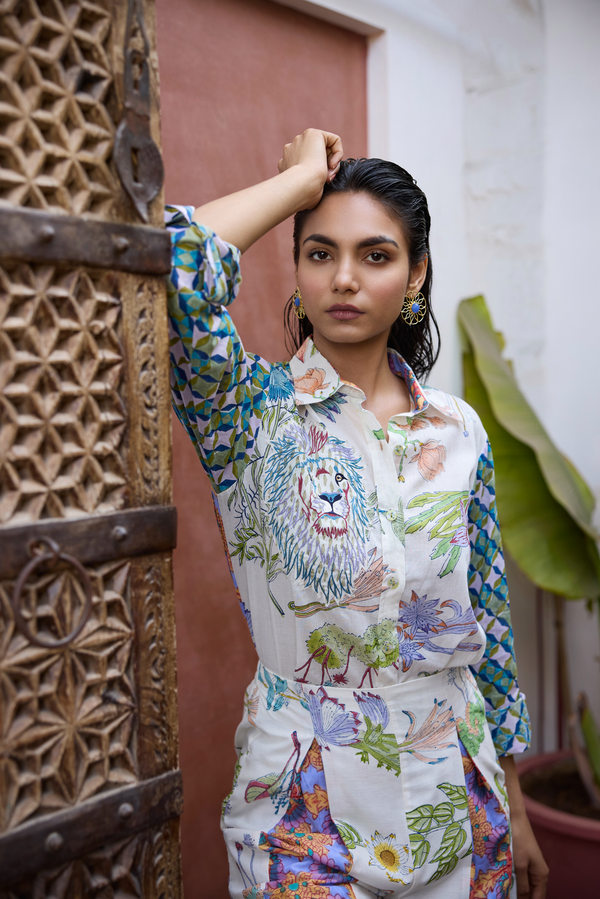 The fabric, made of natural yarns is hand blocked by artisans from Jaipur, commissioning the printing technique that involves meticulous carving of intricate designs onto wooden blocks by hand, which are then dipped into natural dyes and hand printed onto the fabric with extreme precision.