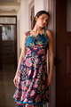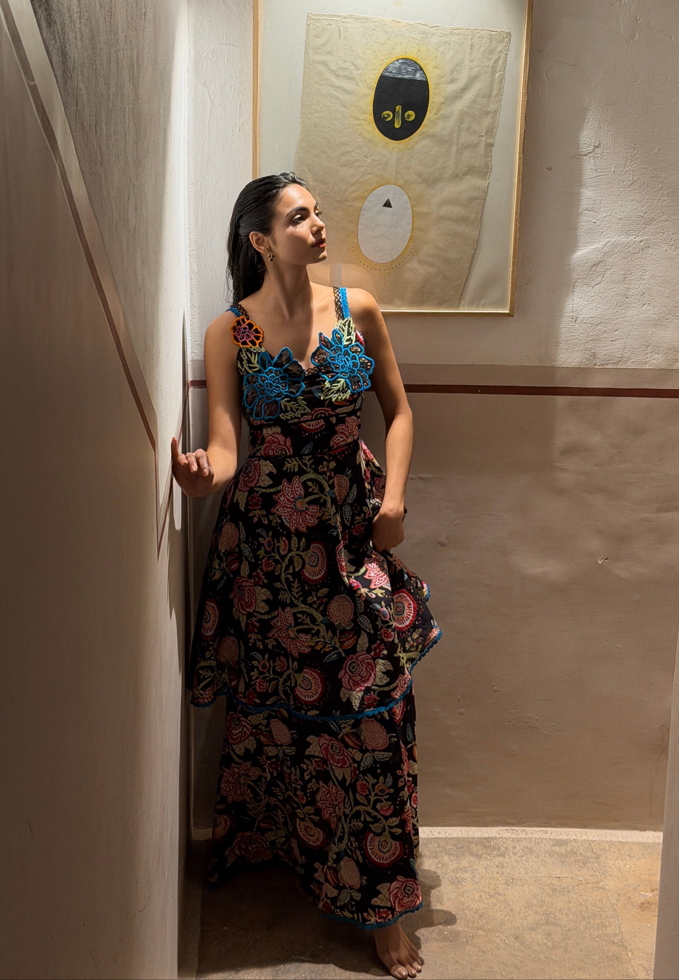 The fabric, made of natural yarns is hand blocked by artisans from Jaipur, commissioning the printing technique that involves meticulous carving of intricate designs onto wooden blocks by hand, which are then dipped into natural dyes and hand printed onto the fabric with extreme precision.